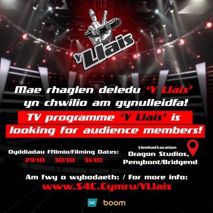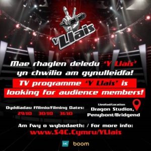 Y Llais (The Voice) will be filming in Bridgend and we’re looking for people to join our studio audience!